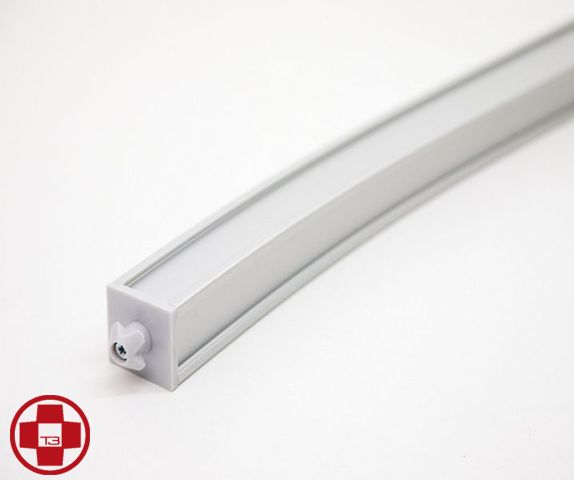 Profile szynowe (T3 Fabframe Channel) to aluminiowe tuby o przekroju kwadratu 33x33mm z kanałem o szerokości 23 mm na wszystkich bokach. Do mocowania paneli i półek służą m.in. różne, wsuwane w kanał inserty.